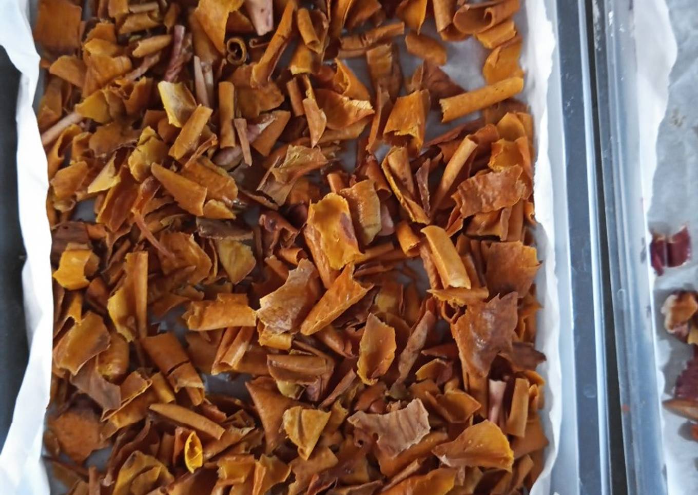 - Pela los mangos. Coloca las tiras en una charola con papel y lleva al sol hasta deshidratar.