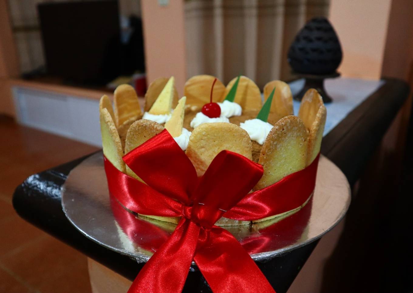 - Después de sacarlo del refri lo desmoldaremos y lo decoraremos con las soletas y un listón y cerezas.