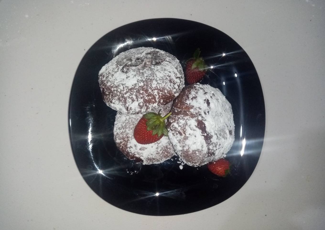 - Luego de rellenar vamos a espolvorear azúcar glass por todos los lados de la berlinesa.