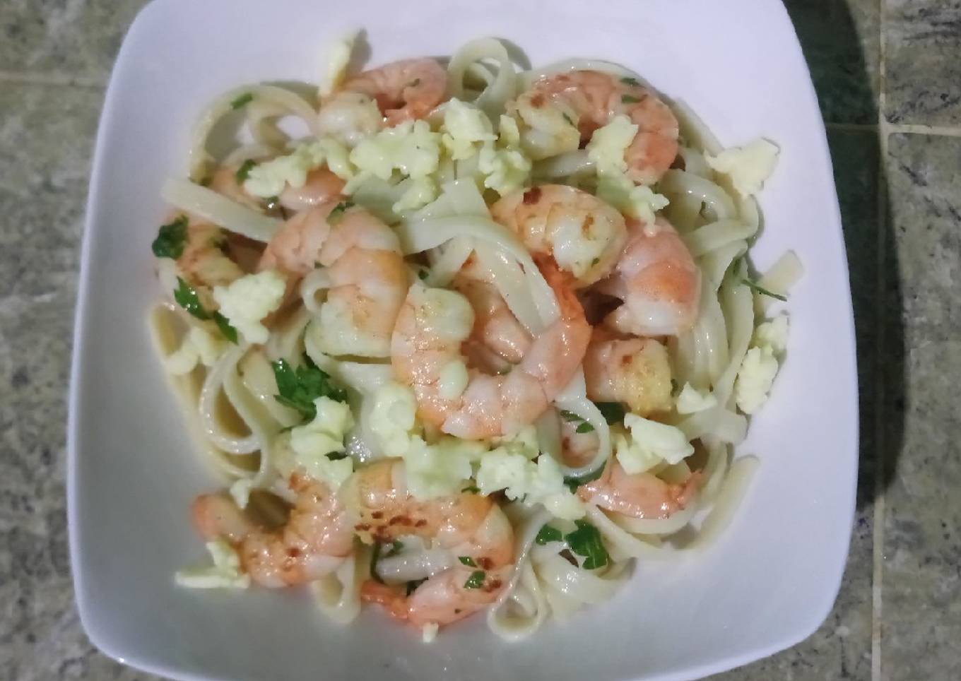 Spaghetti con camarones