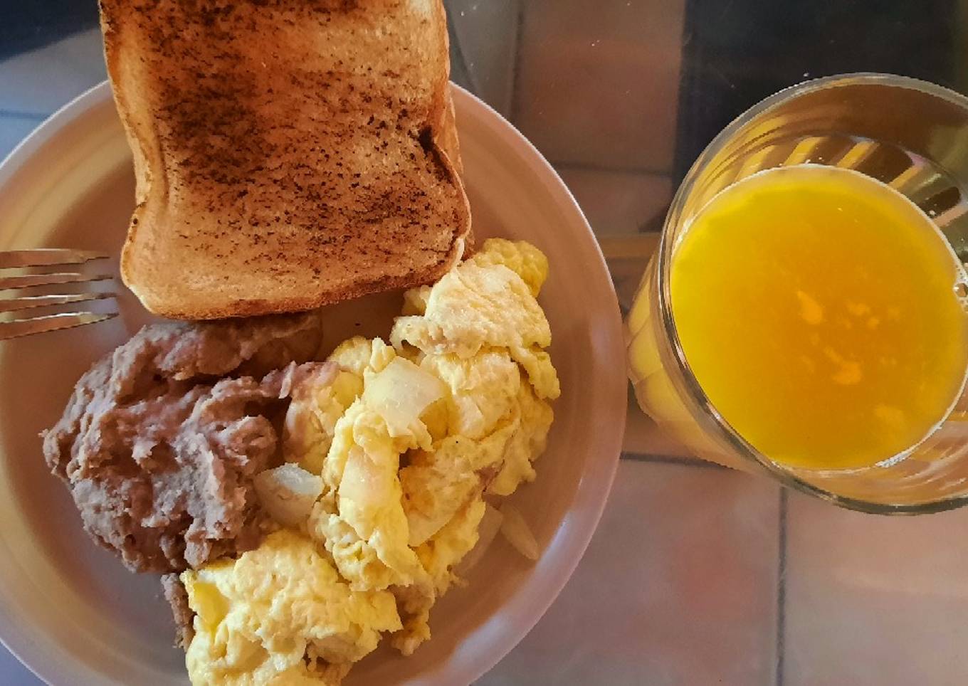 - Guisarlo la cebolla y el huevo en mantequilla. Servir con frijoles, pan y jugo.