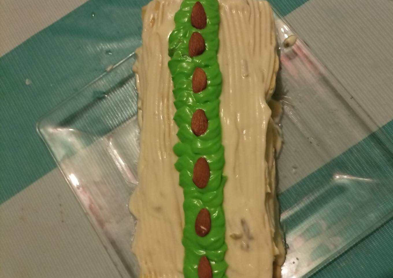 - Una vez enrollado lo decoramos con nuestra crema batida y dejamos enfriar
