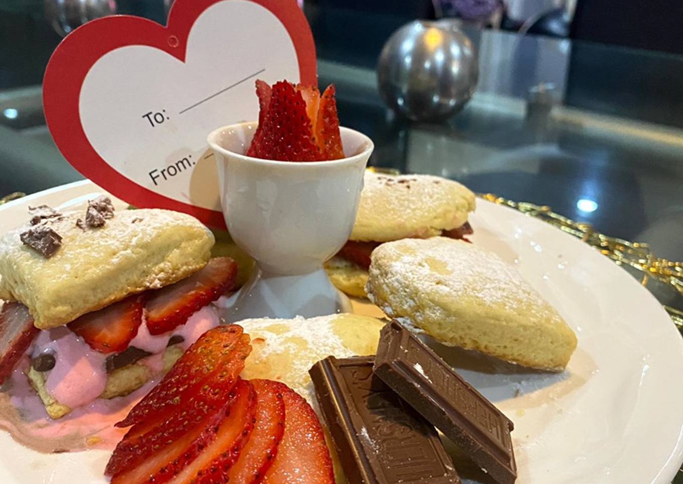 - Ahora para nuestro especial de San Valentín montaremos nuestros scones con fresas y chocolates